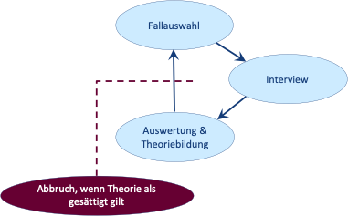 - Abbruch der Fallauswahl, wenn die Einbeziehung neuer Fälle keine weitere Modifikation der Theorie mehr erfordert und die entwickelte Theorie als gesättigt gelten kann